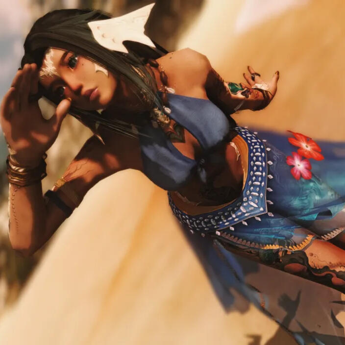 She would not resign herself to her fate and just tried to keep swimming. Just as the predator closed in on her like a bullet, something quickly darted through the waters, and suddenly, the ocean around her was stained red. Then she felt herself being dragged by someone much faster than her in the water. It was a blue-skinned Xaela with black scales, webbed fingers, and a spear in hand. She did not look towards the girl and simply kept swimming until they reached shore. She was not very gentle with the teenager, dropping her onto the beach as she caught her breath and headed towards a pile of supplies and what looked like a net full of fish.Doremi caught her breath as well and looked up at the woman on the beach with a curious gaze, unable to muster words of thanks, as a feeling of shame filled her mind, thinking how weak she was, that she could not last even a day without needing protection.The Xaela woman spoke, “Child.. You wish to become chum for the sharks, yes?” The way she spoke was brutish and matter-of-fact, “Well?” She looked at the child as if she were a disappointed mother. She stood up, walking to the teen and grabbing her by the chin, “The ruby sea gives life and takes it away just as quickly.. And yet this one cannot even muster words of thanks.” The woman was clearly upset by being forced into a fight with a shark when she did not need to be.“Th.. thank you..” Doremi said softly, looking down at the sand as she clenched her fist in frustration.“Ahh, the child can speak. Good…” She got up and returned to her things to pick up a large shawl to dry herself off with. “Tell me then, where is home so that I can whisk you there safely and be back to my job hopefully before sundown. Sui-no-sato correct? Come, child. I do not have time for this interruption.”“That place is dead to me…” she grimaced and looked up to the woman with a passionate look on her face, “Do not make me go back there… I..I can't.” Doremi pleaded with the Xaela woman.The tribal woman’s demeanor changed entirely at that moment, as she sympathized with the young Raen, but she did not say anything to soothe the child. “The light-scale does not want to go back then? But she has nowhere to go… and she will clearly not survive alone...” The woman sighed and rolled her eyes before asking herself with a shrug and a chuckle, “What am I to do with you then..?”“I.. I don't know.. I won’t burden you…” Doremi stood up and rubbed her shoulder, her kimono still damp from the ocean water. “I.. I will just go...”“No, you won't, child. I still have more work to do. You will stay here and protect my bounty. You have a debt to pay…” She tossed her shawl to Doremi and pointed to her stuff on the beach before walking back into the water with her fishing spear in hand.Doremi simply nodded and walked over to the pile of goods and supplies, sat down, and wrapped the shawl around her to warm up and dry off. As the dark-skinned woman descended into the waves, leaving the Raen to sit alone with her thoughts in relative safety, the open sea.The dark-skinned woman made several trips to and from the sea to her net, where she deposited fish that she had run through with her spear. Doremi found herself in awe of the women's endurance, and finally, when she made her last trip, she said, “Last catch for the day, first we have lunch, then we make way back to my village.”“Yo.. your village?” She nodded sheepishly, unsure of where life may take her next.Doremi learns the way of the spear (Age 14)It had been a year living in the Steppe, and she was finally starting to get used to the Xaela way of doing things. Everything here was so much different that she finally felt free, looking out over the expansive grasslands in her traditional hempen chest wrap and feathered skirt. Dalai Ejinn approached slowly and sat next to Doremi; she didn't really respond, just continued looking out towards the sunset.Dalai chuckled and nudged Doremi, “So you will not ask then?”Doremi turned her head to face her friend, “Why do I need to ask if I know the answer already?” She turned back, putting her chin on her knees as she did so.“The clan leaders have spoken; Doremi Shimizu will begin training with the spear at first light,” Dalai said confidently with a smirk, waiting for the child's reaction.Doremi turned quickly towards her mentor, “Really?!” She shot up and started running around in circles, picking up her stick, which she was using as a makeshift spear, and practicing immediately. Dalai, meanwhile, just looked down the hill at her unexpected charge like a proud mother.Doremi goes to Kugane the hard way (Age 17)After successfully taking the fast way to the Ruby Sea via the One River, Dalai and Doremi were catching good hauls below the waves and were ready to start bringing them into shore when Dalai saw it. “There is a boat here. Be cautious… Doremi…”“Should we wait it out?” Doremi asked nervously.“And if they do not leave? Come.. if we wait, we are food for the sharks…” Dalai replied, then started swimming back to shore.The ship was berthed nearly one hundred yalms from where they had set their supplies when they started fishing. As they approached the shore, they focused on the boat, seeing no signs of people aboard.“Quickly, now grab the pack. We are going back to the steppe now...” Dalai said, rushing over to their things to collect them.As they finished collecting their things and turned to head towards the river delta. A man's voice startled them, “And.. where do you think you are going, ladies…”Dalai turned her head and said, “Doremi… run.”Doremi took off into a sprint, dropping the supplies to save her spear. She bolted as fast as she could. But when she noticed Dalai was not with her, she turned back and saw her fighting the group of men who were ready to overpower her. “Dalai!?!” She screamed, which the men took as their mo