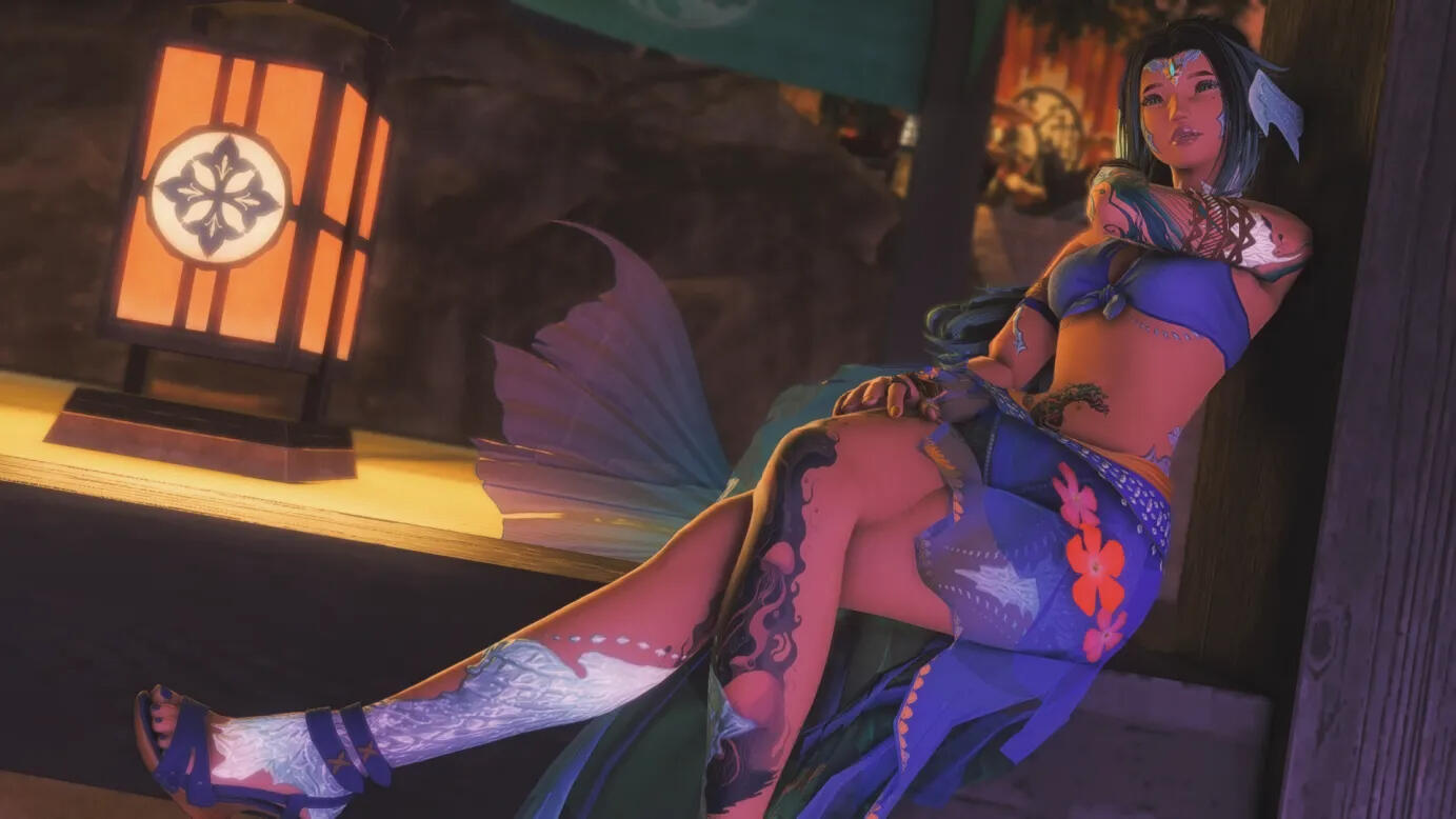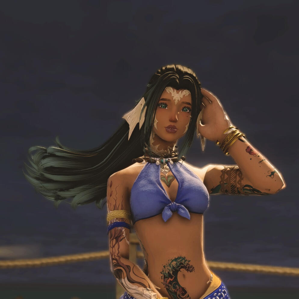 Name: Doremi Shimizu (瞳麗美 清水) (Doh-Ray-Me She-Me-Zu) Aka. Demi Deningrad Aka. Yunnä IshiAge: 35Race: RaenGender: Intersex (Appears Female) (Represented in Male Dimorphism in height, and Black eye sclera.)Height: 6'0"Physical Description: She is very tall compared to other Au'ri women and has a full-body yakuza-style tattoo featuring koi fish and jellyfish, along with a scar, on her ankle where another tattoo used to be. Her hair is dark black with a streak of aquamarine running through it. Her skin was sun-baked from working at Costa del Sol for a year. To anyone who meets her, her scales appear white, oddly a bit whiter than normal Raen. However, if they have visited the temple in good faith, they can see what Demi sees when she looks at herself, which is blue scales, horns, and a fishtail. Her eyes have also changed to a deep aquamarine, with a long slit, similar to those of a cat or a dragon's eye, and the whites of her eyes are black, similar to those of Male Xaela.Personality: She has more of a no nonsense attitude, and once she gets to know you becomes quite sassy and sarcastic while keeping her air of mystery about her. She often finds common ground through tarot cards or divination, primarily making her judgments based on intuition and feelings. While she is not happy, she is safe, and that feeling is evident on her face. She doesn't seem to smile much, but she appears to feel at ease.History: TLDR version. (See Story Page for more detailed Version.)Doremi ran away from home when she was 13 due to being considered an abomination for how she was born (though there is more to this story than meets the eye) , or at least that is what she has been led to believe. When she was swimming through the Ruby Sea away from Sui no Sato, she was nearly eaten by a shark. Only to be saved by a member of the Ejinn tribe who was fishing in the Ruby Sea. Her name was Dalai Ejinn. Doremi followed her back to the Steppe and lived with the Ejinn until she was 16, after being captured by slavers while fishing with Dalai.Upon reaching Kugane, it was not long before she was purchased by a prominent and dangerous clan leader, Takeda Renzō of the Kurotora-kai (The Black Tiger Society). Takeda prided himself on his collection, to which she now belonged, and she became an additional source of income for him in multiple ways, primarily through her artistic ability and homemaking skills, which he had encouraged her to develop, but there were other darker ways as well, secrets that only Doremi and the clan leaders truly know fully.Even the yakuza must put on a façade in front of the higher lords, and seeing as Doremi’s work has been noticed for its fine look and, more particularly, how it made them feel. Thus, the clan was commissioned to refurbish a temple in Shirogane and sent Doremi begrudgingly. Doremi, by contrast, undertook the task with enthusiasm, which she had not shown for some time. Upon completion, the Kami of the temple bestowed a gift on her, making her look as if an Au'ra combined with a mermaid. Although only she could see the changes in the rest of the world, she appeared as if she were a normal Raen... Unless they had been to the temple with Doremi present and paid respects.She escaped her captors with the help of a Namazu Ship and crew that she had befriended in the markets. Finally, at the age of 32, she took as much wealth as she could from the man who tormented her, taking the eye of the head Yojinbo (Bodyguard) of the clan in the process. If you ask her now, she will give you a fake name just in case he is still looking for her. Demi Deningrad is the Name she had chosen, a shortened nickname for herself that Dalai would sometimes call her, and the last name was the name of a city she had chosen from a fantasy book she was allowed to read.Once she arrived in Eorzea, she landed at Costa del Sol and made a deal with Gegeruju. She would build for him if he would allow her to stay hidden under his roof for a time. Nowadays, she is a little more confident and goes back and forth between Costa Del Sol, Limsa Lominsa, and her apartment in the Mists.However, all of that has started to change when she visited Kugane again, renewing the efforts of Kurotora-Kai to find and capture Doremi once more. Only time will tell if she can fend off her hunters or if she will ultimately fail and be dragged back to Kugane the hard way.